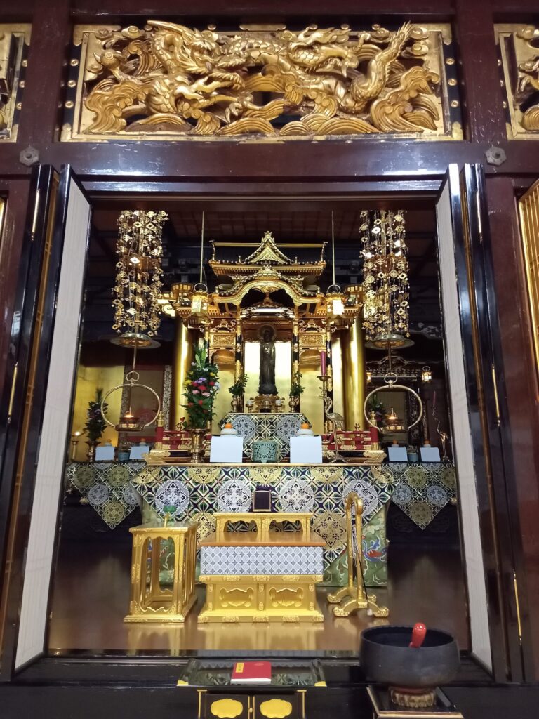 - 蓮如上人が吉崎より御帰洛の際、御名残として一貫代の六字尊号(南無阿弥陀仏)を授 かり、本尊として草庵を結びました。